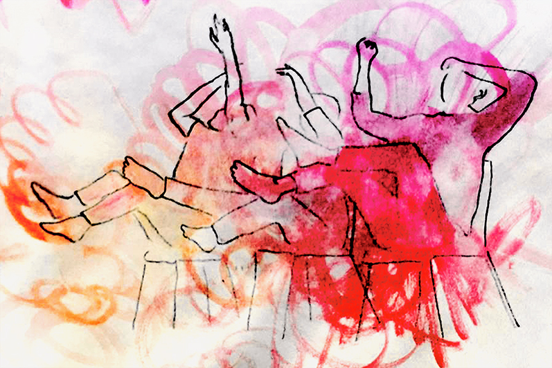 In Entangled Phrases we take on an axiomatic practice of ‘listening to movement’. We use our voices to make the movement sound and we let the sound effect the movement. The entanglement between sound and movement as well as between the three of us creates a rich and complex tapestry. We weave ourselves together both visually and aurally through dedication and affection. We respond to a society of fear developing a technique of sensitivity and we nurture the ability to hold several thoughts at once while responding with our full capacities to complexity. Polyrhythm and polyphony are welcomed as a challenge of depth of experience and understanding. The piece is developed in close collaboration between the performers Anja Muller, Angela Peris Alcantud, Alma Söderberg and music maker Hendrik Willekens.